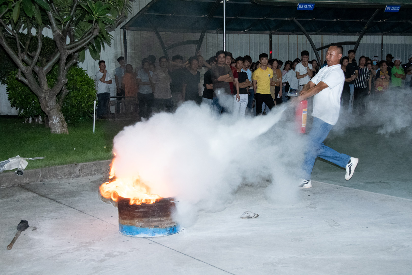 ▲实操演练、员工进行实践演习;使用灭火器、水带等等